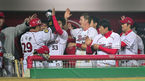 [OSEN=광주, 곽영래 기자] 15일 오후 광주-기아 챔피언스 필드에서 '2014 한국야쿠르트 세븐 프로야구' KIA 타이거즈와 한화 이글스의 경기가 열렸다. 8회말 1사 1루 KIA 나지완이 투런 홈런을 때린 뒤 동료들에게 축하받고 있다. KIA
