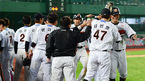 [OSEN=광주, 곽영래 기자] 15일 오후 광주-기아 챔피언스 필드에서 '2014 한국야쿠르트 세븐 프로야구' KIA 타이거즈와 한화 이글스의 경기가 열렸다. 7회초 2사 만루 한화 정근우와 이희근이 피에의 안타로 득점을 올린 뒤 동료들과