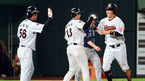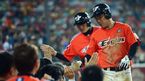 [OSEN=광주, 곽영래 기자] 15일 오후 광주-기아 챔피언스 필드에서 '2014 한국야쿠르트 세븐 프로야구' KIA 타이거즈와 한화 이글스의 경기가 열렸다. 8회초 1사 한화 김회성이 솔로 홈런을 때린 뒤 동료들과 기뻐하고 있다. KIA 한승