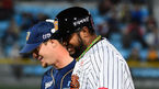 [OSEN=사직, 정송이 기자] 15일 오후 부산 사직구장에서 '2014 한국야쿠르트 세븐 프로야구' 롯데 자이언츠와 NC 다이노스의 경기가 열렸다. 4회말 롯데 히메네스가 내야 땅볼로 아웃된 뒤 수비 백업을 하던 NC 선발 웨버와 인사를 나
