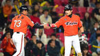 [OSEN=광주, 곽영래 기자] 16일 오후 광주-기아 챔피언스 필드에서 '2014 한국야쿠르트 세븐 프로야구' KIA 타이거즈와 한화 이글스의 경기가 열렸다. 8회초 2사 2,3루 한화 이용규가 2타점 3루타를 때린 뒤 이종범 코치와 기뻐하고 있