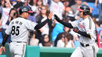 [OSEN=잠실, 곽영래 기자] 20일 오후 서울 잠실야구장에서 '2014 한국야쿠르트 세븐 프로야구' 두산 베어스 대 롯데 자이언츠의 경기가 열렸다. 롯데 히메네스와 옥스프링이 7회말 수비를 마치고 하이파이브를 하고 있다. 양 팀 선