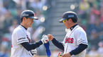 [OSEN=잠실, 곽영래 기자] 20일 오후 서울 잠실야구장에서 '2014 한국야쿠르트 세븐 프로야구' 두산 베어스 대 롯데 자이언츠의 경기가 열렸다. 4회말 2사 2,3루 두산 김재호가 2타점 적시타를 때린 뒤 1루 코치와 기뻐하고 있다. 양