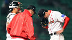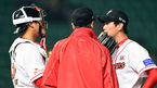 [OSEN=문학,박준형 기자] 23일 오후 인천 문학구장에서 열린 2014 한국야쿠르트 세븐 프로야구 SK 와이번스와 NC 다이노스의 경기, 4회초 SK 김광현 선발투수가 조웅천 투수 코치와 이야기를 나누고 있다. 이날 경기에서 SK와 NC는 김