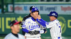 [OSEN=대구, 이대선 기자] 24일 오후 대구 시민운동장야구장에서 '2014 한국야쿠르트 세븐 프로야구' 삼성 라이온즈와 LG 트윈스의 경기가 열렸다. 7회말 1사 만루에서 삼성 이흥련이 우전 적시타를 치고 김평호 코치와 환호하고 있