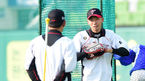 [OSEN=대구, 이대선 기자] 24일 오후 대구 시민운동장야구장에서 '2014 한국야쿠르트 세븐 프로야구' 삼성 라이온즈와 LG 트윈스의 경기가 열렸다. 경기에 앞서 LG 조계현 감독대행이 훈련중인 선수들을 바라보고 있다. 삼성은 '영