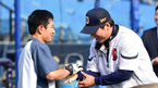 [OSEN=창원, 이대선 기자] 25일 오후 경남 창원 마산야구장에서 '2014 한국야쿠르트 세븐 프로야구' NC 다이노스와 두산 베어스의 경기가 열렸다. 경기에 앞서 두산 김현수가 NC 김경문 감독을 향해 인사를 하고 있다. 양 팀은 찰리