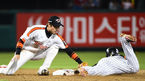 [OSEN=잠실, 정송이 기자] 1일 오후 서울 잠실야구장에서 열린 ‘2014 한국야쿠르트 세븐 프로야구’ 두산 베어스와 넥센 히어로즈 경기, 6회초 1사 2루 윤석민 타석때 3루로 도루하던 서건창이 두산 3루수 오재원에게 태그 아웃되
