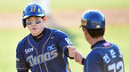 [OSEN=대구, 이대선 기자] 3일 오후 대구 시민운동장야구장에서 '2014 한국야쿠르트 세븐 프로야구' 삼성 라이온즈와 NC 다이노스의 경기가 열렸다. 4회초 2사 3루에서 NC 박민우가 우전 적시타를 치고 전준호 코치와 하이파이브를