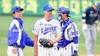 [OSEN=대구, 이대선 기자] 4일 오후 대구 시민운동장야구장에서 '2014 한국야쿠르트 세븐 프로야구' 삼성 라이온즈와 NC 다이노스의 경기가 열렸다. 8회초 2사 1루에서 삼성 박석민이 마운드를 내려가는 마틴을 격려하고 있다. 삼성