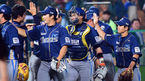 [OSEN=문학, 곽영래 기자] 6일 오후 인천 문학야구장에서 '2014 한국야쿠르트 세븐 프로야구' SK 와이번스와 삼성 라이온스의 경기가 열렸다. 8회초 2사 만루 삼성 최형우와 나바로가 김태완의 적시타로 득점을 올린 뒤 동료들과 하