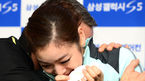 [OSEN=올림픽공원, 지형준 기자] 6일 오후 서울 올림픽공원 체조경기장 특설 아이스링크에서 김연아의 아이스쇼 '삼성 갤럭시★스마트에어컨 올댓스케이트 2014'가 열렸다. 김해진이 기자회견을 하며 눈물을 흘리고 있다. '피겨여