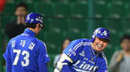 [OSEN=문학, 곽영래 기자] 8일 오후 인천 문학야구장에서 '2014 한국야쿠르트 세븐 프로야구' SK 와이번스와 삼성 라이온스의 경기가 열렸다. 9회초 2사 1루 삼성 박한이가 중견수 앞 안타를 때린 뒤 3루까지 진루한 뒤 미소를 짓고