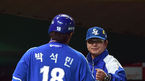 [OSEN=문학, 곽영래 기자] 8일 오후 인천 문학야구장에서 '2014 한국야쿠르트 세븐 프로야구' SK 와이번스와 삼성 라이온스의 경기가 열렸다. 8회초 1사 1루 삼성 류중일 감독이 투런포를 때린 박석민과 하이파이브를 하고 있다. 부