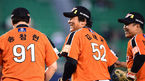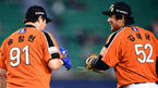 [OSEN=사직, 정송이 기자] 8일 오후 부산 사직구장에서 열린 '2014 한국야쿠르트 세븐 프로야구' 롯데 자이언츠와 두산 베어스의 경기, 1회초 무사 1,2루서 두산 김현수가 우월 스리런을 날린상황. 마운드를 방문한 정민태 롯데 투
