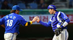 [OSEN=사직, 정송이 기자] 8일 오후 부산 사직구장에서 열린 '2014 한국야쿠르트 세븐 프로야구' 롯데 자이언츠와 두산 베어스의 경기, 3회초 1사 주자없는상황에서 솔로포를 날린 홍성흔이 덕아웃에서 동료들로부터 환영을 받고