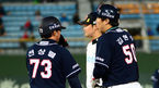 [OSEN=사직, 정송이 기자] 8일 오후 부산 사직구장에서 열린 '2014 한국야쿠르트 세븐 프로야구' 롯데 자이언츠와 두산 베어스의 경기, 8회초 솔로홈런을 날린 선두타자 홍성흔이 홈을 밟고 있다. 두산 베어스 좌완투수 정대현이 올