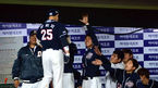 [OSEN=사직, 정송이 기자] 8일 오후 부산 사직구장에서 열린 '2014 한국야쿠르트 세븐 프로야구' 롯데 자이언츠와 두산 베어스의 경기, 8회초 무사 주자없는 상황에서 솔로홈런을 날린 양의지가 덕아웃에서 동료들로부터 환영을
