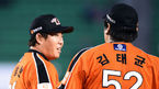 [OSEN=부산, 이대호 기자] 두산 베어스 홍성흔과 양의지가 연속타자 홈런을 날렸다 . 홍성흔은 8일 사직구장에서 벌어진 롯데 자이언츠전에서 11-6으로 앞선 8회초 롯데 심수창을 상대로 가운데 담장을 넘어가는 솔로 홈런을 터트