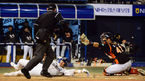 [OSEN=마산, 정송이 기자] 9일 오후 경남 마산구장에서 열린 '2014 한국야쿠르트 세븐 프로야구' NC 다이노스와 롯데 자이언츠의 경기, 8회말 2사 1,2루 이종욱의 1타점 적시타로 2루주자 이상호가 홈을 밟은 상황. 롯데 포수 강민호