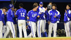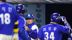 [OSEN=잠실, 이대선 기자] 9일 오후 서울 잠실야구장에서 '2014 한국야쿠르트 세븐 프로야구' 두산 베어스와 삼성 라이온즈의 경기가 열렸다. 7회초 1사 1루에서 삼성 최형우가 우월 투런 홈런을 치고 더그아웃에서 동료들과 하이파