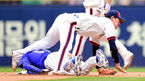 [OSEN=잠실, 곽영래 기자] 11일 오후 서울 잠실야구장에서 '2014 한국야쿠르트 세븐 프로야구' 두산 베어스와 삼성 라이온즈의 경기가 열렸다. 6회초 1사 1루 채태인 타석때 두산 김재호가 2루 도루를 시도하던 삼성 박해민의 슬라
