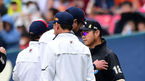 [OSEN=잠실, 곽영래 기자] 11일 오후 서울 잠실야구장에서 '2014 한국야쿠르트 세븐 프로야구' 두산 베어스와 삼성 라이온즈의 경기가 열렸다. 7회초 공수교대때 두산 코칭스태프들이 오재원과 말다툼을 벌인 이영재 1루심을 진정