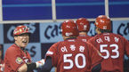 [OSEN=창원, 김영민 기자] 13일 오후 창원시 마산구장에서 열린 '2014 한국야쿠르트 세븐 프로야구' NC 다이노스와 KIA 타이거즈 경기,8회초 1사 2,3루 필의 동점 스리런 홈런포에 나지완이 득점 주자를 환영하고 있다. NC 우완 태드 웨