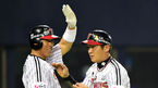 [OSEN=잠실, 이대선 기자] 13일 오후 서울 잠실야구장에서 '2014 한국야쿠르트 세븐 프로야구' LG 트윈스와 롯데 자이언츠의 경기가 열렸다. 8회말 1사 3루에서 LG 조쉬벨의 희생플라이때 홈을 밟은 3루주자 오지환이 이병규와 하이파