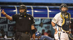 [OSEN=창원, 김영민 기자] 13일 오후 창원시 마산구장에서 열린 '2014 한국야쿠르트 세븐 프로야구' NC 다이와 KIA 타이거즈 경기, 김풍기 구심이 보호장비가 잘 갖추어진 일체형 헬멧을 쓰고 경기를 진행하고 있다. NC 우완 태드 웨
