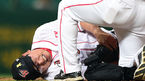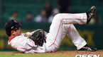 [OSEN=문학, 곽영래 기자] 13일 오후 인천 문학야구장에서 '2014 한국야쿠르트 세븐 프로야구' SK 와이번스와 두산 베어스의 경기가 열렸다. 9회초 무사 SK 전유수가 두산 홍성흔의 타구에 맞아 고통스러워하고 있다. 두산은 우완 노