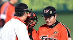 [OSEN=대구,박준형 기자] 14일 오후 대구구장에서 열린 '2014 한국야쿠르트 세븐 프로야구' 삼성 라이온즈와 한화 이글스의 경기, 6회말 4실점 허용한 한화 선발투수 송창현이 강판되고 있다. 송창현은 이날 5⅓이닝 5실점 패전위기