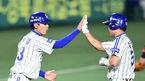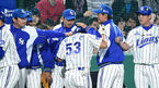 [OSEN=대구,박준형 기자] 14일 오후 대구구장에서 열린 '2014 한국야쿠르트 세븐 프로야구' 삼성 라이온즈와 한화 이글스의 경기, 6회말 1사 만루 삼성 김상수의 2타점 적시타때 2루 주자 김헌곤이 동료들의 축하를 받고 있다 이날