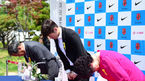 [OSEN=수원, 민경훈 기자] '산소탱크' 박지성(아인트호벤)이 드디어 선수생활에 마침표를 찍는다. 박지성이 14일 경기도 수원 박지성축구센터에서 박지성이 기자회견을 마치고 부모님들과 함께 인사를 하고 있다. 이날 기자회견