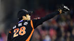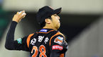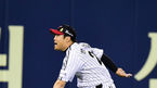 [OSEN=잠실, 지형준 기자] 15일 오후 서울 잠실야구장에서 '2014 한국야쿠르트 세븐 프로야구' LG 트윈스와 롯데 자이언츠의 경기가 열렸다. 7회말 1사 3루에서 롯데 장원준이 LG 이병규의 투수 앞 땅볼 타구를 처리하고 미소짓고 있