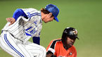 [OSEN=창원, 김영민 기자] 15일 오후 창원시 마산구장에서 열린 '2014 한국야쿠르트 세븐 프로야구' NC 다이노스와 KIA 타이거즈 경기,9회초 1사 1루 차일목의 내야안타때 1루주자 강한울 3루까지 진루하였으나 태그아웃 처리되고 있