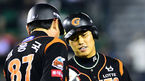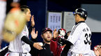 [OSEN=잠실, 정송이 기자] 15일 오후 서울 잠실야구장에서 '2014 한국야쿠르트 세븐 프로야구' LG 트윈스와 롯데 자이언츠의 경기가 열렸다. 6초 1사 2,3루 2타점 적시타를 날린 롯데 신본기가 1루에서 김응국 코치와 하이파이브를 나