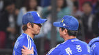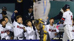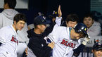 [OSEN=잠실, 지형준 기자] 16일 오후 서울 잠실야구장에서 '2014 한국야쿠르트 세븐 프로야구' 두산 베어스와 NC 다이노스의 경기가 열렸다. 7회말 무사 1루에서 두산 김현수가 투런포를 날리고 더그아웃에서 유희관의 축하를 받고