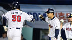 [OSEN=잠실, 지형준 기자] 16일 오후 서울 잠실야구장에서 '2014 한국야쿠르트 세븐 프로야구' 두산 베어스와 NC 다이노스의 경기가 열렸다. 7회말 무사 1루에서 두산 김현수가 투런포를 날리고 홈을 밟으며 오재원과 기뻐하고 있다