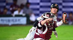 [OSEN=사직,박준형 기자] 16일 오후 부산 사직구장에서 열린 2014 한국야쿠르트 세븐 프로야구 롯데 자이언츠와 넥센 히어로즈의 경기,5회말 무사 1,2루 롯데 정훈이 넥센 밴 헤켄의 투구에 맞고 있다. 이날 롯데와 넥센은 김사율과