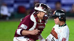 [OSEN=사직,박준형 기자] 16일 오후 부산 사직구장에서 열린 2014 한국야쿠르트 세븐 프로야구 롯데 자이언츠와 넥센 히어로즈의 경기,5회말 1사 만루 롯데 손아섭의 1타점 적시타때 2루 주자 신본기가 홈에서 태그아웃되고 있다.