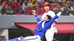 [OSEN=광주, 김영민 기자] [OSEN=광주, 김영민 기자] 17일 오후 광주 KIA 챔피언스필드에서 열린 '2014 한국야쿠르트 세븐 프로야구' KIA 타이거즈와 삼성 라이온즈 경기,7회말 무사 1루 김다원의 포수 근처 플라이 타구때 삼성 이흥련