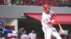 [OSEN=사직,박준형 기자] 17일 오후 부산 사직구장에서 열린 2014 한국야쿠르트 세븐 프로야구 롯데 자이언츠와 넥센 히어로즈의 경기,8회초 2사 넥센 김하성이 외야플라이 타구를 날리고 있다. 김하성은 신인으로 이날 첫 데뷔했