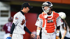 [OSEN=사직,박준형 기자] 17일 오후 부산 사직구장에서 열린 2014 한국야쿠르트 세븐 프로야구 롯데 자이언츠와 넥센 히어로즈의 경기,7회초 롯데 김유영 투수가 넥신 박병호에게 1타점 적시타를 허용한 후 용덕한 포수의 격려를