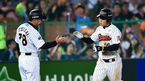 [OSEN=사직,박준형 기자] 17일 오후 부산 사직구장에서 열린 2014 한국야쿠르트 세븐 프로야구 롯데 자이언츠와 넥센 히어로즈의 경기,7회말 롯데 선두타자 신본기가 솔로홈런을 날리고 베이스를 돌고 있다. 시즌 1호 홈런. 이날 경