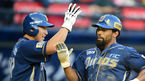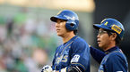 [OSEN=사직,박준형 기자] 17일 오후 부산 사직구장에서 열린 2014 한국야쿠르트 세븐 프로야구 롯데 자이언츠와 넥센 히어로즈의 경기,6회초 1사 2,3루 넥센 김민성이 2타점 적시타를 날린후 심재학 코치와 하이파이브를 하고 있다.