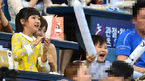 [OSEN=잠실, 지형준 기자] 17일 오후 서울 잠실야구장에서 '2014 한국야쿠르트 세븐 프로야구' 두산 베어스와 NC 다이노스의 경기가 열렸다. 7회말 1사 1,2루에서 두산 김현수의 동점 적시타가 터지자 홍성흔의 아내 김정임씨와 아들
