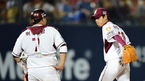 [OSEN=목동, 민경훈 기자] 20일 오후 서울 목동구장에서 열린 ‘2014 한국야쿠르트 세븐 프로야구’ 넥센 히어로즈와 한화 이글스의 경기, 5회말 넥센 선두타자 박병호가 중월 솔로 홈런을 날린 후 덕아웃에서 염경엽 감독과 하이