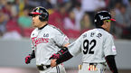 [OSEN=광주, 이대선 기자] 21일 오후 광주-KIA챔피언스필드에서 '2014 한국야쿠르트 세븐 프로야구' KIA 타이거즈와 LG 트윈스의 경기가 열렸다. 7회초 2사 2루에서 KIA 정의윤이 좌월 투런 홈런을 날리고 홈에서 이병규와 하이파이브를