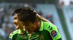 [OSEN=전주월드컵경기장, 곽영래 기자] 21일 오후 전주월드컵경기장에서 전북 현대와 프랑스 리그1의 명문 올림피크 리옹의 친선경기가 열렸다. 전반 전북 최철순이 선제골을 넣은 한교원과 기뻐하고 있다. 유럽 스타들의 리옹